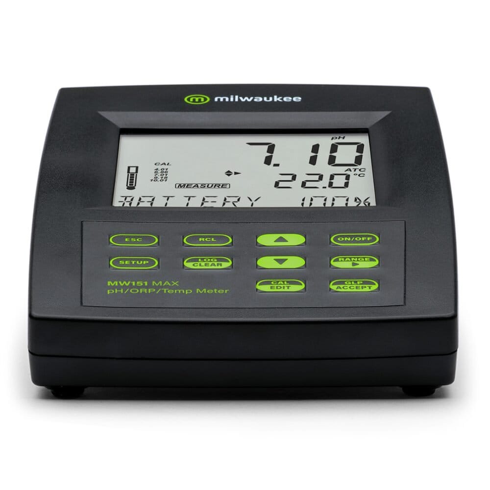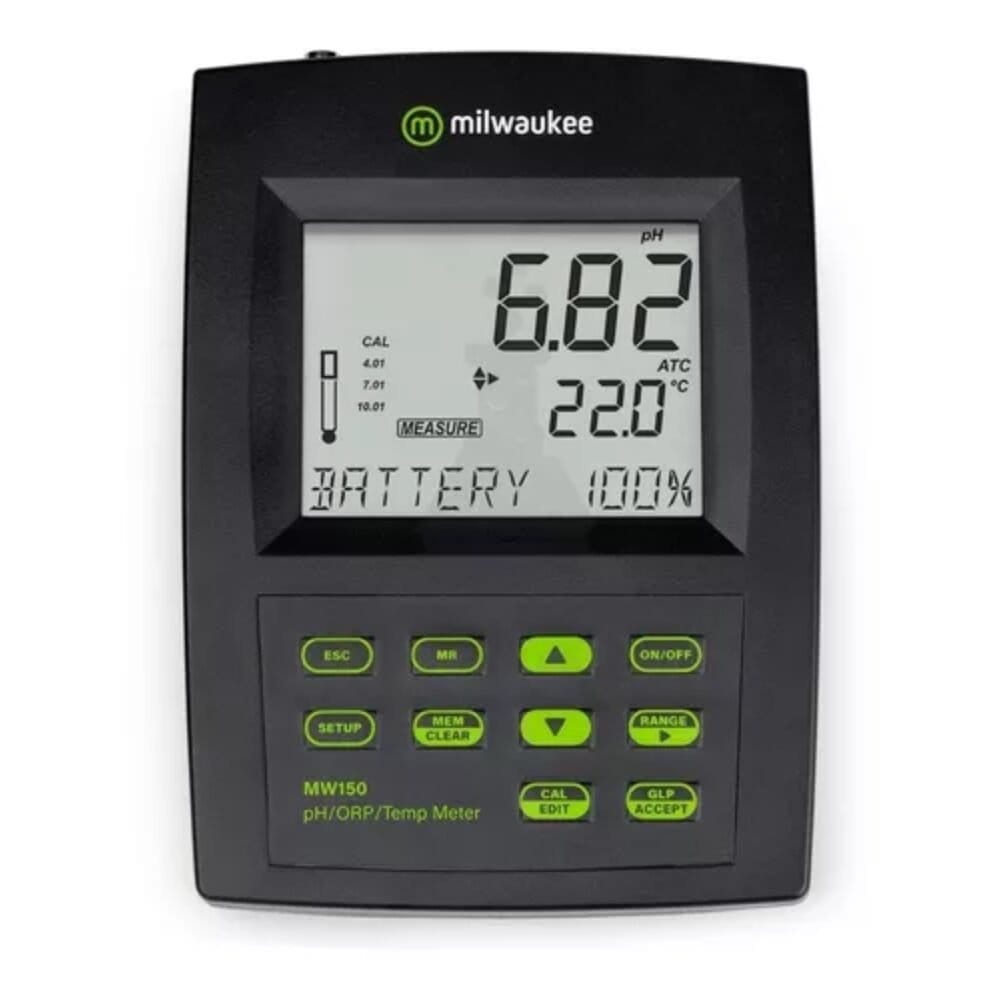 O Milwaukee MW180 5-em-1 MAX pH/ORP/EC/TDS/NaCl/Temp. Logging Bench Meter conquistou fãs ao redor do mundo com sua operação confiável, rápida e simples, bem como seu design resistente e elegante e pequeno tamanho de bancada. Ele é preciso para ± 1% da leitura para EC/TDS/NaCl e até +/-0,002 pH, com compensação de temperatura automática ou manual e uma tecla GLP dedicada integrada. Ideal para uso em educação, horticultura, laboratórios, processamento de alimentos, tratamento de água e muitas outras aplicações com necessidades desafiadoras de medição de pH/ORP/EC/TDS/NaCl/Temp.