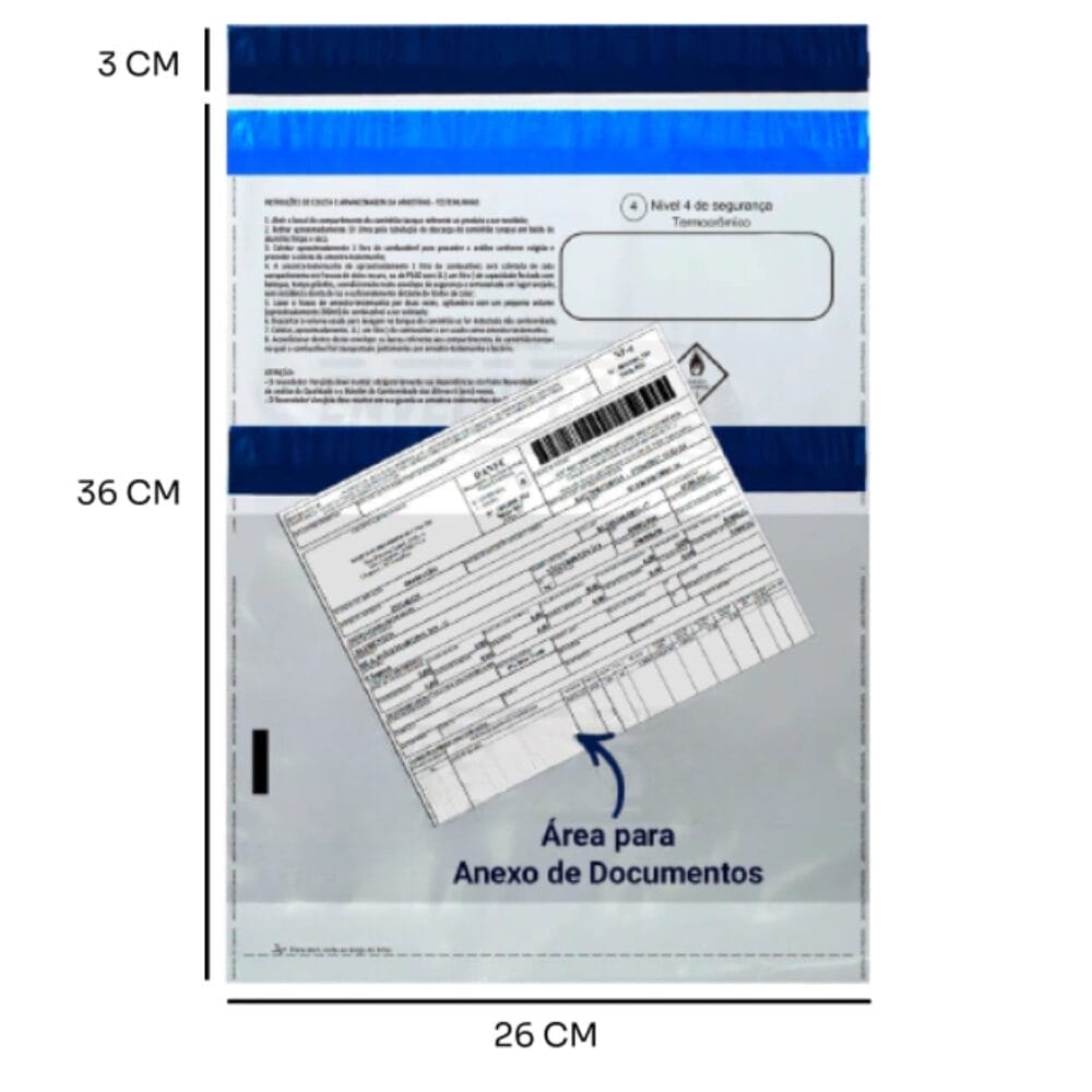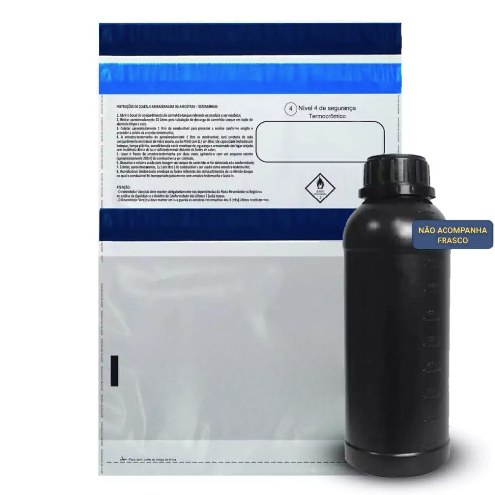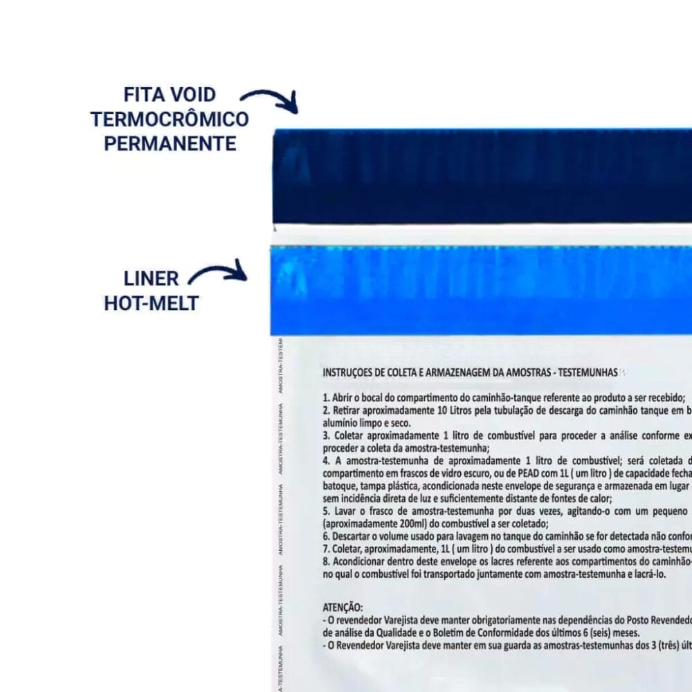 Envelopes de segurança Amostra Testemunha são utilizados para acondicionar frascos de amostras de combustíveis para análise.