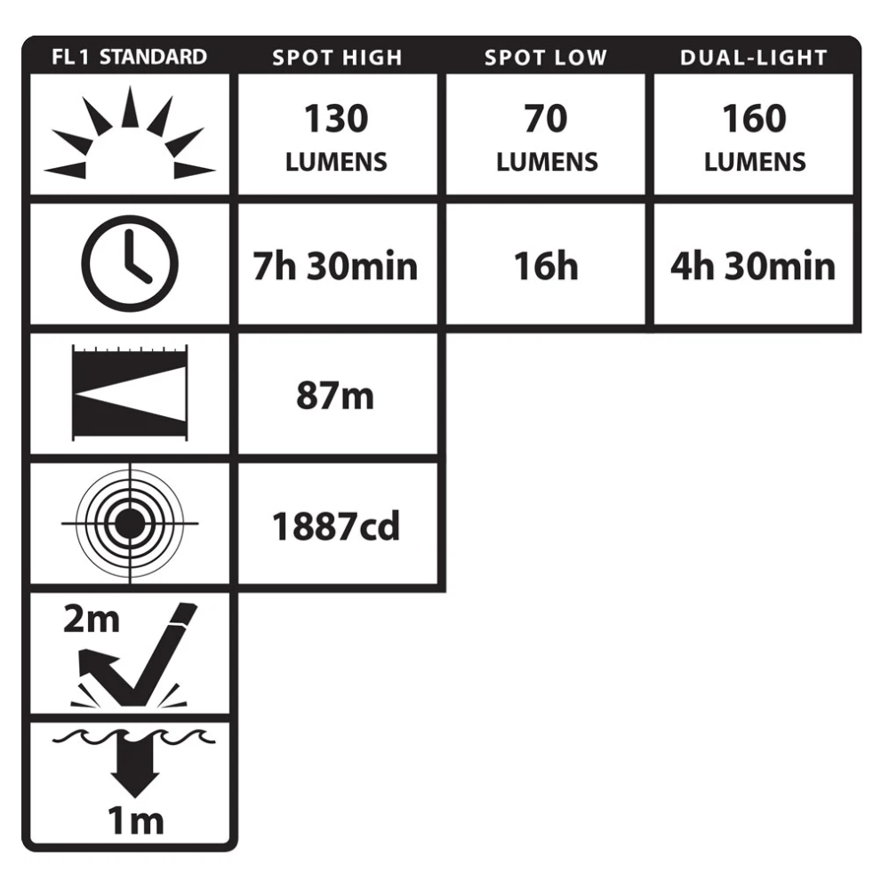 Este farol possui uma cabeça basculante ajustável alimentada por uma bateria recarregável integrada de Li-Polymer para tempo de execução prolongado.