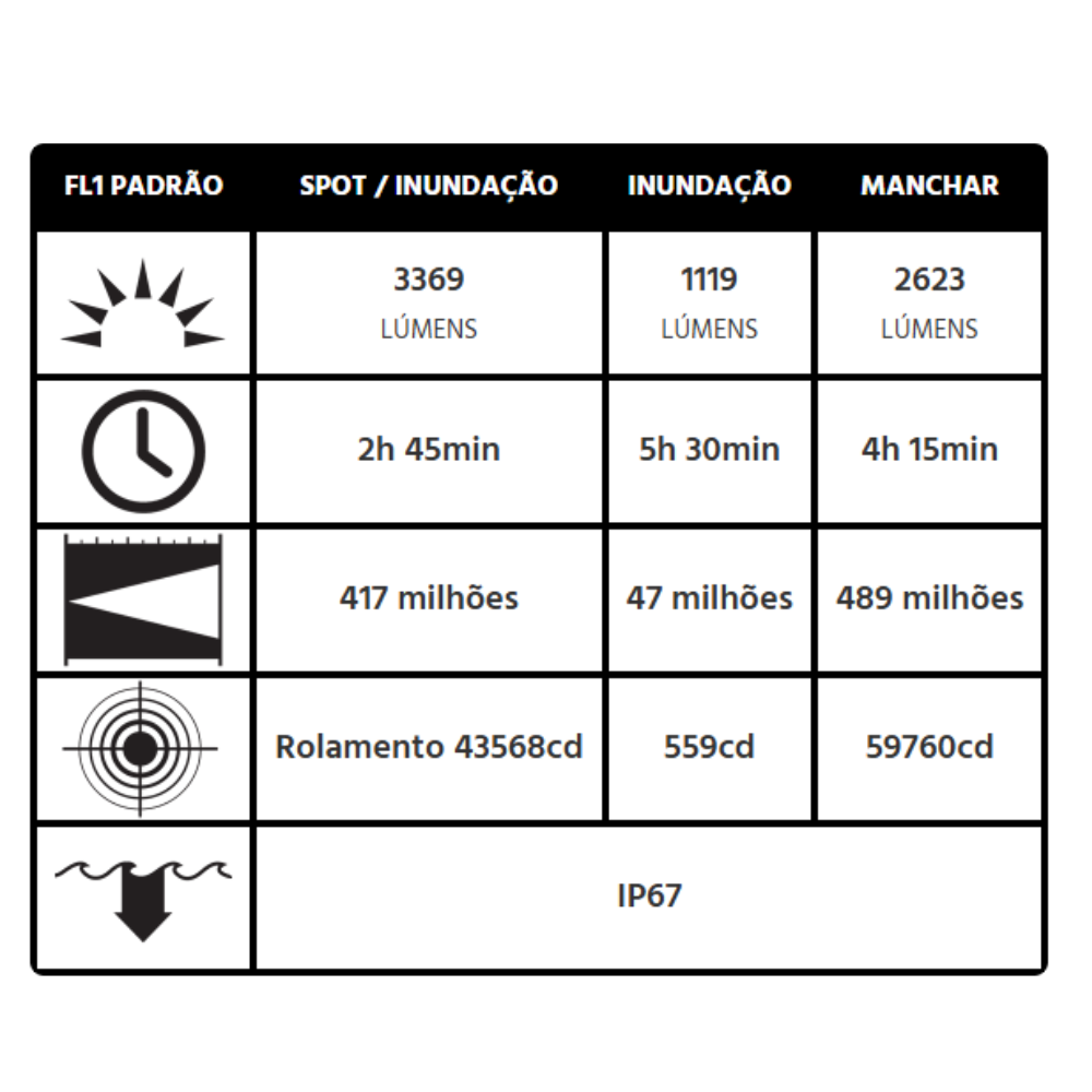 4 modos Spot / Flood / Spot-Flood / Flashing |