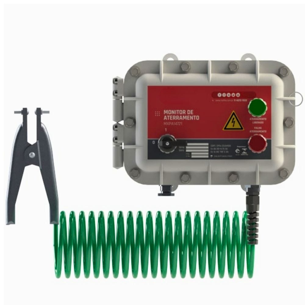 O Monitor de Aterramento EX C/ Garra Tensão 127-220 Vca é um sistema de monitoramento de aterramento fabricado em liga de alumínio fundido de alta resistência mecânica e à corrosão. Projetado com tipo de proteção Ex d IIB+H₂ à prova de explosão, o monitor verifica a efetividade da conexão de aterramento entre a garra e a carcaça do veículo ou tanque, liberando com segurança a atividade de carregamento ou descarregamento de líquidos ou gases.