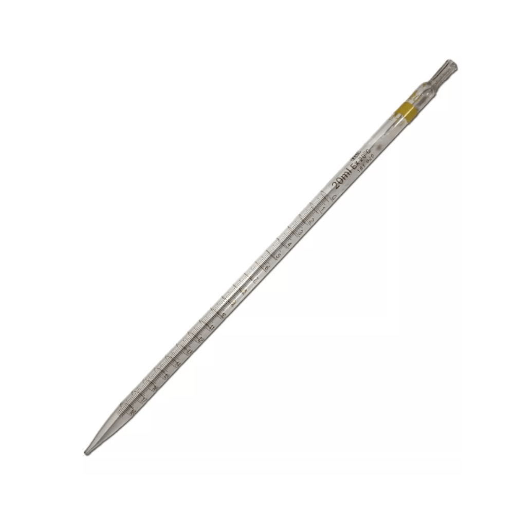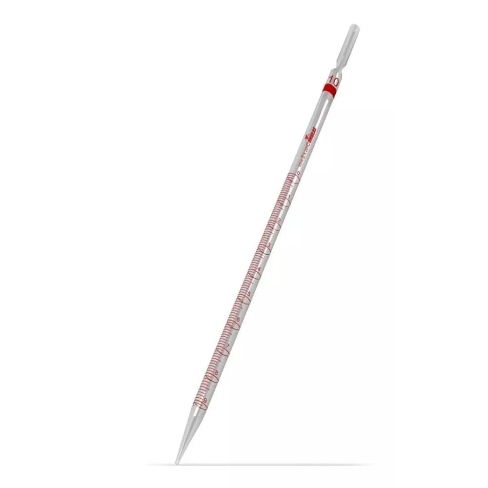 A Pipeta Graduada de Vidro é uma vidraria de laboratório essencial utilizada para medir ou transferir pequenas quantidades de líquido com alta precisão, em volumes de mililitros (mL). Fabricada em vidro de alta qualidade, oferece excelente transparência, resistência química e precisão dimensional, sendo fundamental para procedimentos laboratoriais que requerem medições exatas.