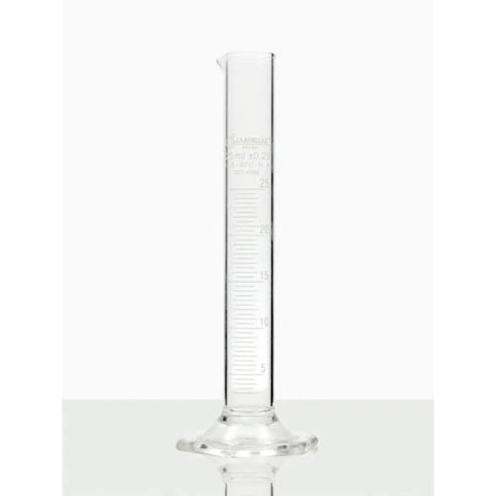 A base hexagonal de vidro proporciona excelente estabilidade e segurança durante o uso, evitando acidentes e garantindo medições precisas mesmo com volumes maiores. A graduação precisa permite leituras confiáveis de volumes líquidos, sendo ideal para preparação de soluções e diluições em laboratório.