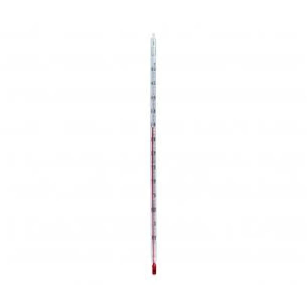 Sua escala é fixada junto ao capilar e envolvida pelo tubo de vidro, caracterizando assim a escala interna que possibilita uma maior precisão e facilidade na leitura da temperatura. Este termômetro possui imersão total, e por essa razão o instrumento deve ser mergulhado na solução à medida que a temperatura for alterando, de forma que somente o ponto desejado fique visível acima da solução.